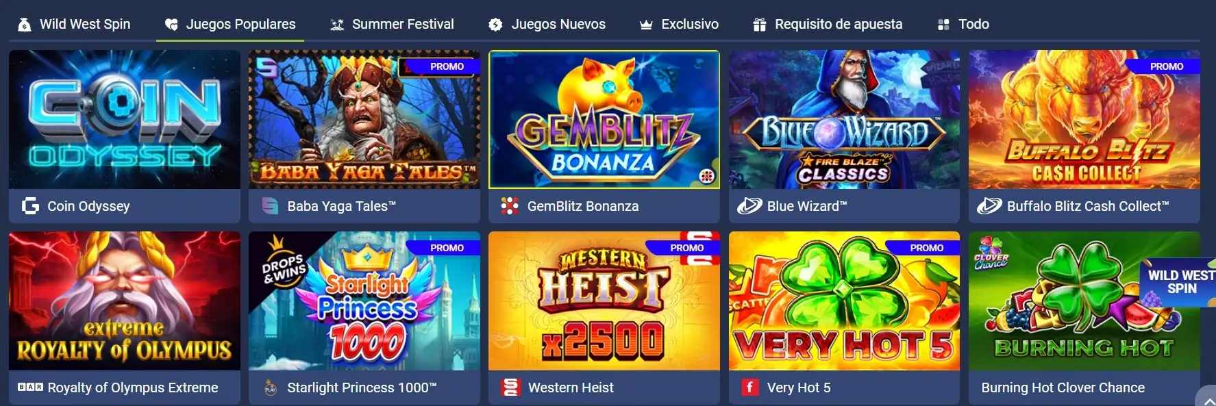 - Western Heist: ambientada en el Lejano Oeste con multiplicadores de hasta x2500, ideal para quienes buscan alta volatilidad.